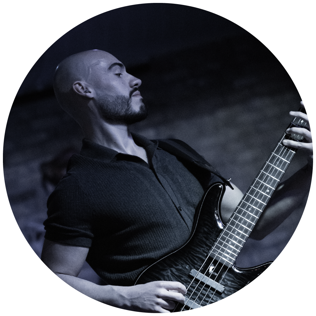 Hailing from Palatine, IL, Sam has been laying down the low end for more than 20 years. His musical inspirations span across the world, drawing from a wide range of styles–from ‘80s New Wave to modern metal, rock, and funk, with influences from Japan to Canada and everywhere in between. At your next Liquid Faction show, don’t be surprised when you find yourself grooving to his funky and rock-esque basslines!